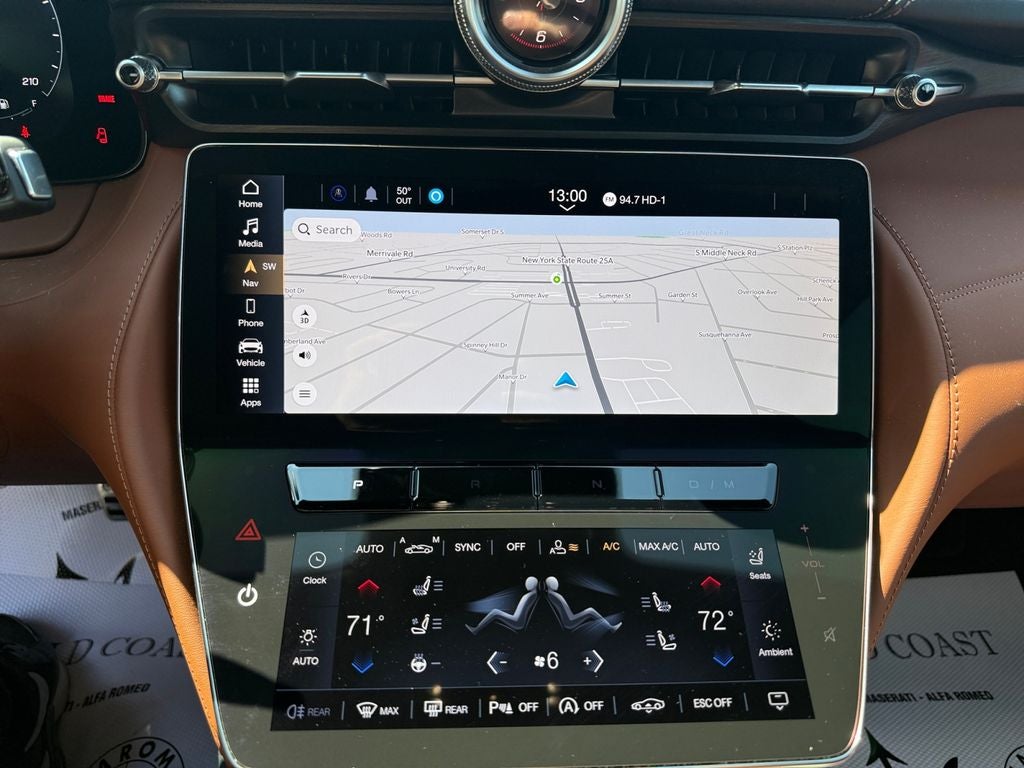 - Maserati Intelligent Assistant w/Navigation -inc: 12.3" upper touchscreen, 8.8" lower touchscreen, HD Radio, wired and wireless Apple CarPlay and Android Auto, Maserati Connected Services w/trial subscriptions, Alexa in-vehicle voice assistant, eCall and bCall w/trial subscriptions and Sonus Faber premium audio system w/12 speakers and subwoofer