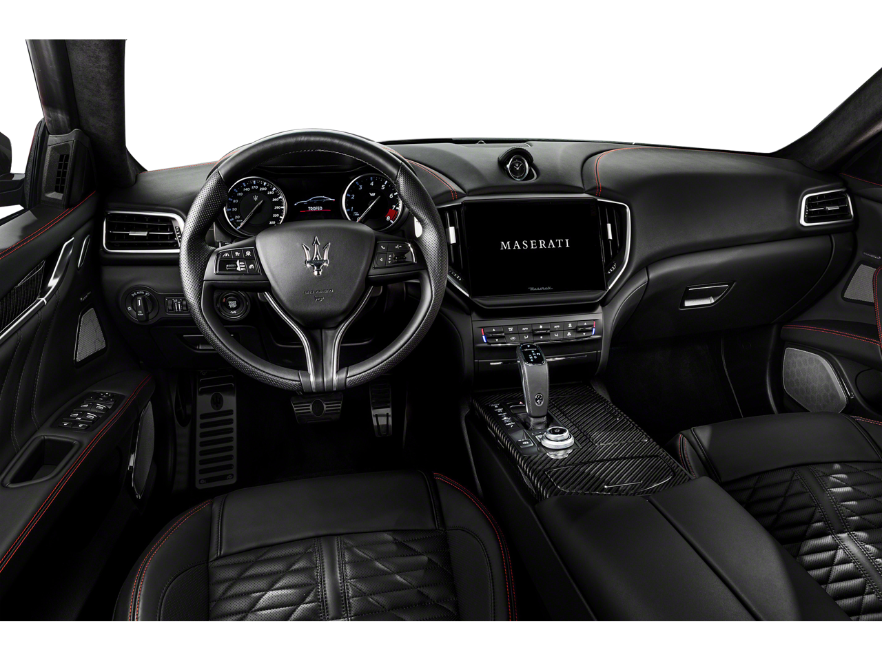 - Radio: AM/FM w/Maserati Touch Control Plus & Nav -inc: 10.1" touchscreen display, HD radio, SiriusXM satellite radio (1-year trial subscription), Maserati audio system (280 watts and 8 speakers), SD card reader, USB, aux-in, Apple CarPlay and Android Auto capable, Bluetooth® functionality, climate controls, OTA updates, Alexa in-vehicle voice assistant, eCall and bCall, remote diagnostics control, navigation services and App store