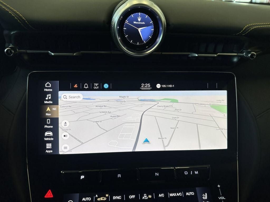 - Radio: Maserati Intelligent Assistant w/Navigation -inc: 12.3" upper touchscreen, 8.8" lower touchscreen, HD Radio, SiriusXM radio (1-year trial subscription), wired and wireless Apple CarPlay, wired and wireless Android Auto, Maserati Connected Services w/trial subscriptions, Alexa in-vehicle voice assistant, eCall and bCall w/trial subscriptions and 14 speaker Sonus Faber premium audio system including subwoofer