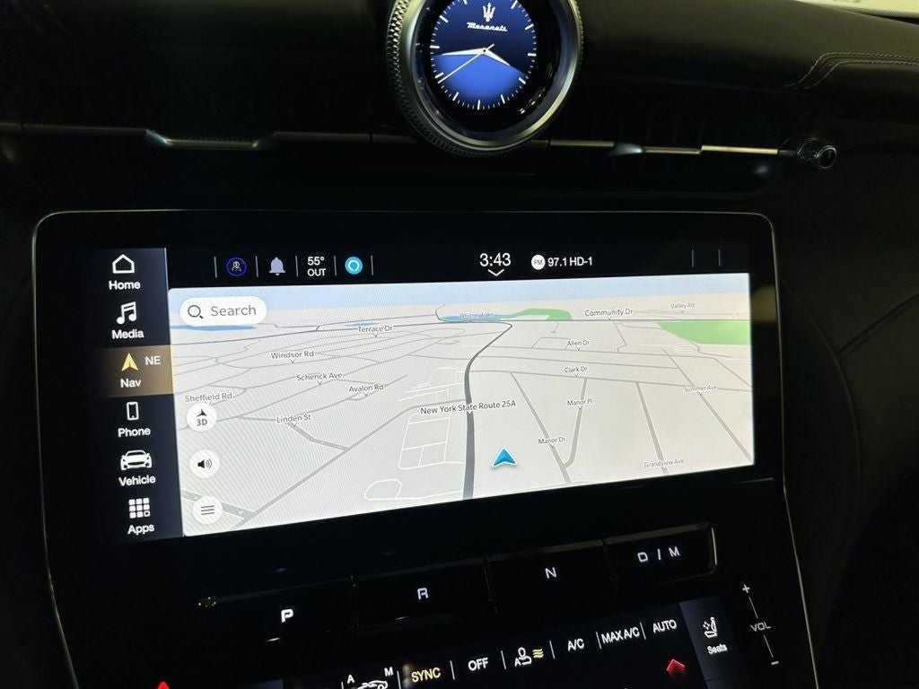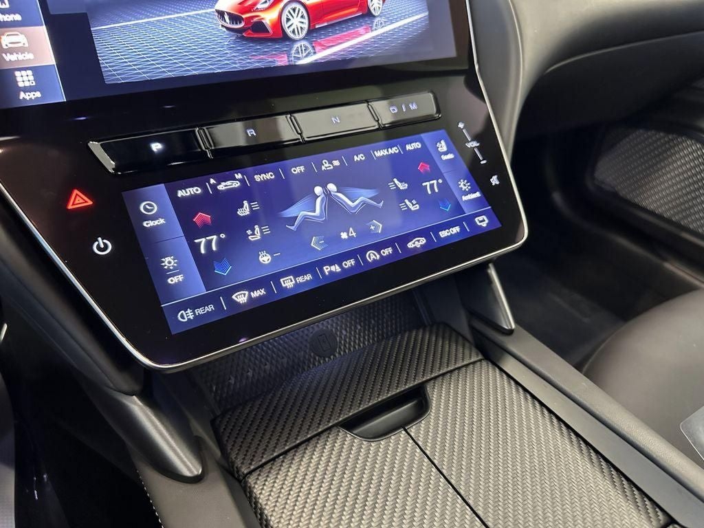 - Radio: Maserati Intelligent Assistant w/Navigation -inc: 12.3" upper touchscreen, 8.8" lower touchscreen, HD Radio, SiriusXM radio (1-year trial subscription), wired and wireless Apple CarPlay, wired and wireless Android Auto, Maserati Connected Services w/trial subscriptions, Alexa in-vehicle voice assistant, eCall and bCall w/trial subscriptions and 14 speaker Sonus Faber premium audio system including subwoofer
